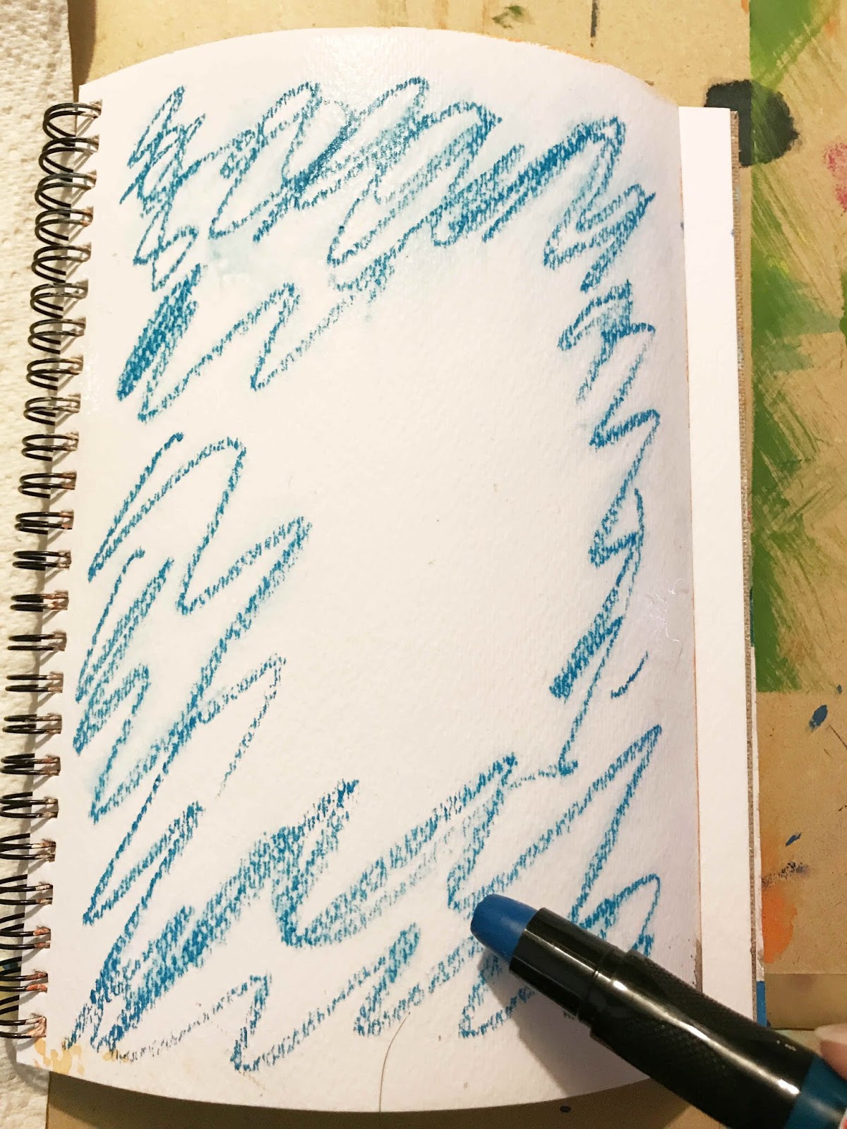 I applied Aqua Green, Turquoise and White Marabu Crayons to the wet page... and used the wet brush to blend and smooth the colours together...